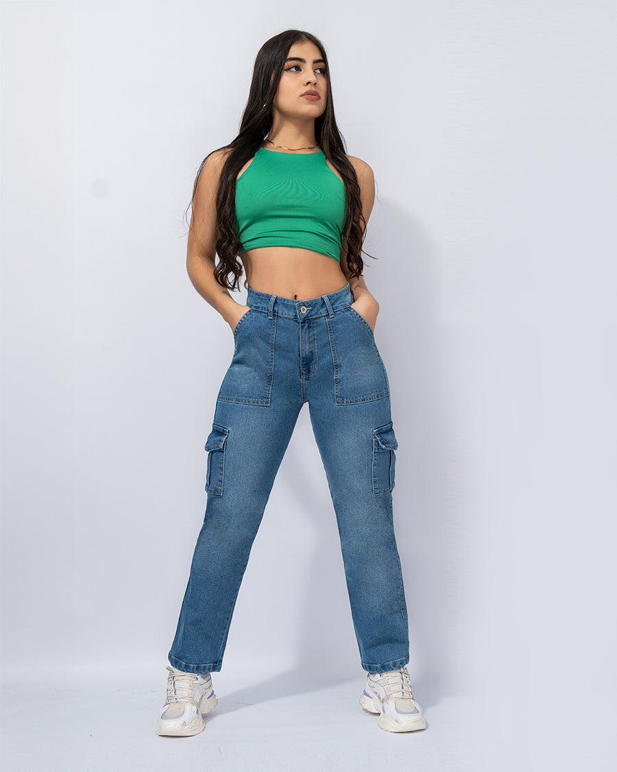 Pantalón cargo en dril beige tiro alto, que combina funcionalidad y diseño moderno. Destaca clásico pegado al cuerpo que definen la cintura, bolsillos laterales estratégicamente posicionados para máxima practicidad, y un tiro alto que favorece la silueta. La bota recta...