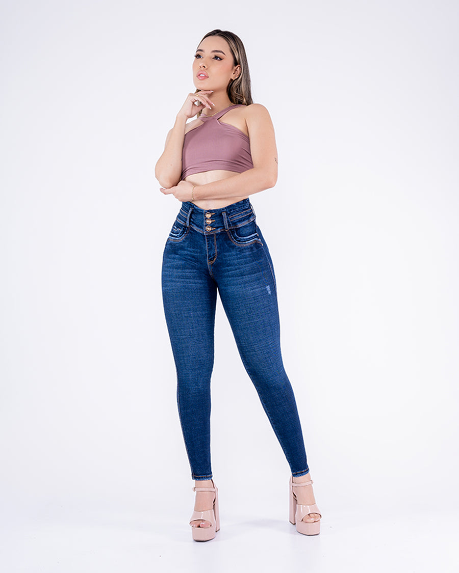 Pantalón jean skinny ultraslim tiro alto diseñado para realzar tu figura con tecnología levantacola y pretina ancha con ajuste en 3 botones que moldea y define tu figura. Confeccionado en tela stretch de alta elasticidad, se adapta perfectamente a tu...
